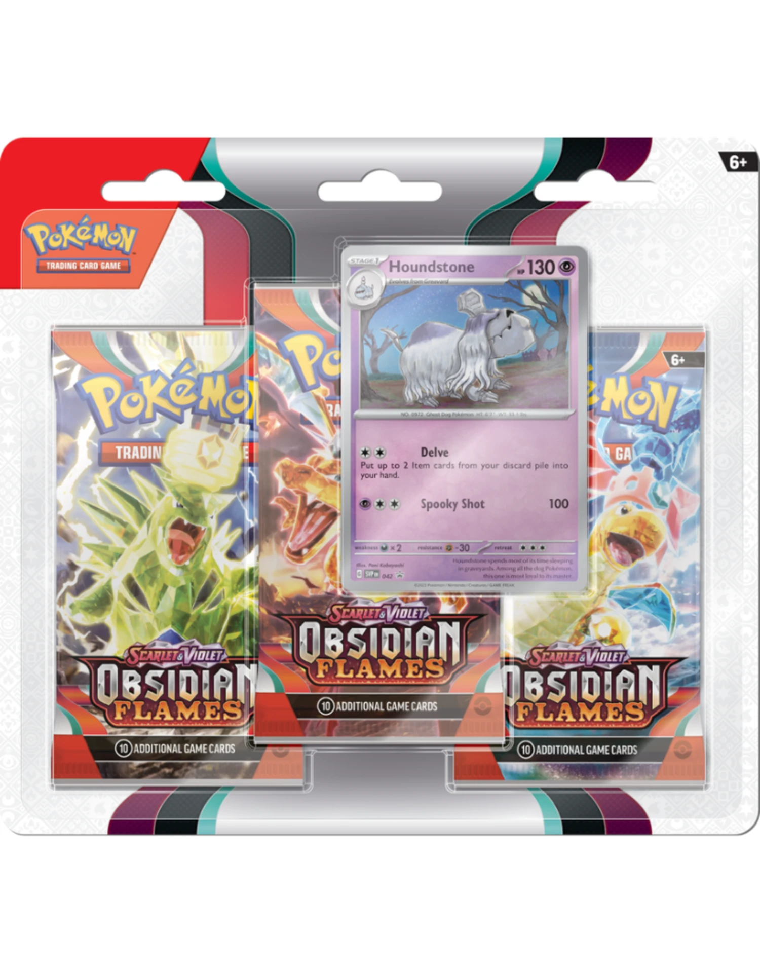 Red-hot embers illuminate the pitch-black night and sparks flare into an inferno as Charizard ex surges forth with newfound powers of darkness! The glittering Terastal phenomenon imbues some Pokémon ex like Tyranitar, Eiscue, and Vespiquen with different types than usual, while Dragonite ex and Greedent ex show mastery of their own inner strengths. Not to be outdone, Revavroom ex, Melmetal ex, and more Pokémon promise to change the course of battle in the Scarlet & Violet—Obsidian Flames expansion!