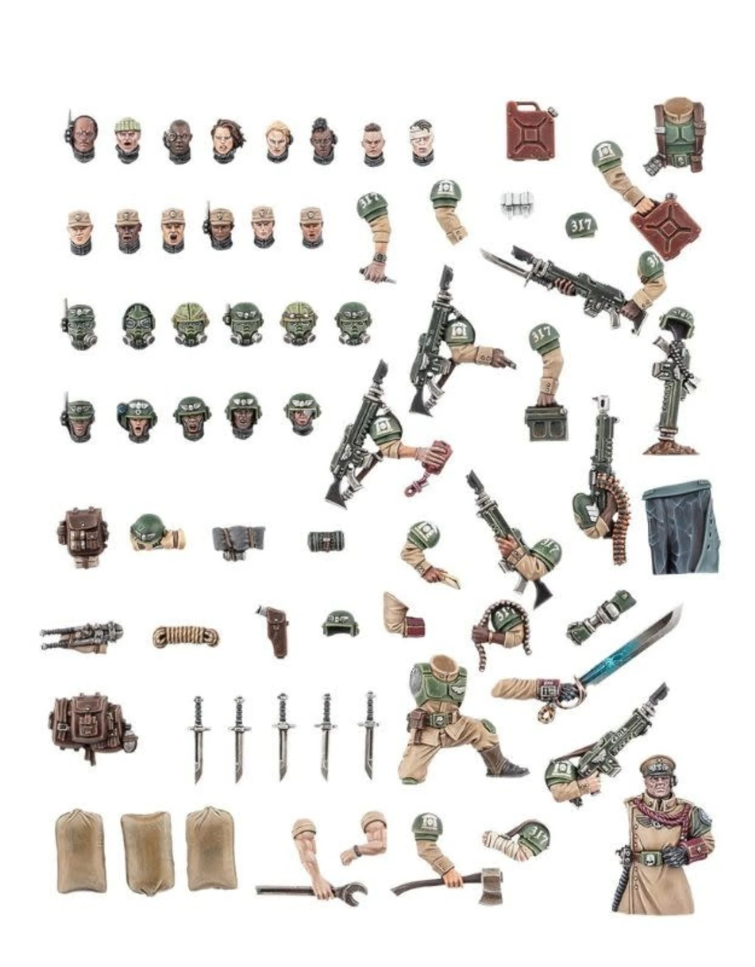 The Astra Militarum welcomes any warm body that can hold a weapon, and the Cadian Upgrades sprue is the perfect way to add extra variety to your regiments. There are 87 components in all, including additional heads, arms and accessories, poses to create medics, map readers and more, and even a decorated officer for your Rogal Dorn.