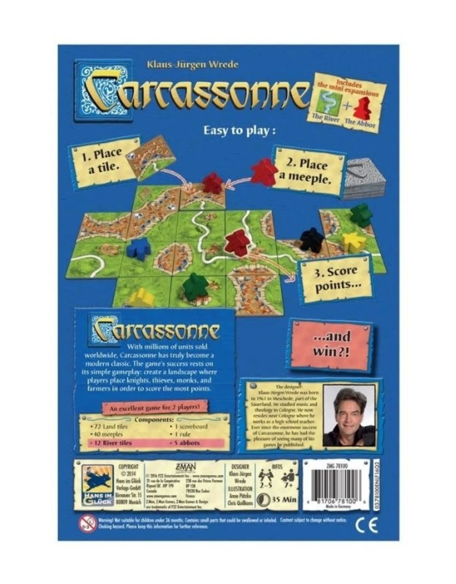 Inspired by the medieval fortress in southern France of the same name, Carcassonne is a tile-laying game in which players fill in the countryside around the fortified city. Players choose from tiles that depict cities, roads, monasteries, and fields; each new tile placed creates an ever-expanding board on which players can then add their followers. Players score points by having followers on features as they’re completed. The player who makes the most strategic placements of tiles and followers will score the most points and win the game.
