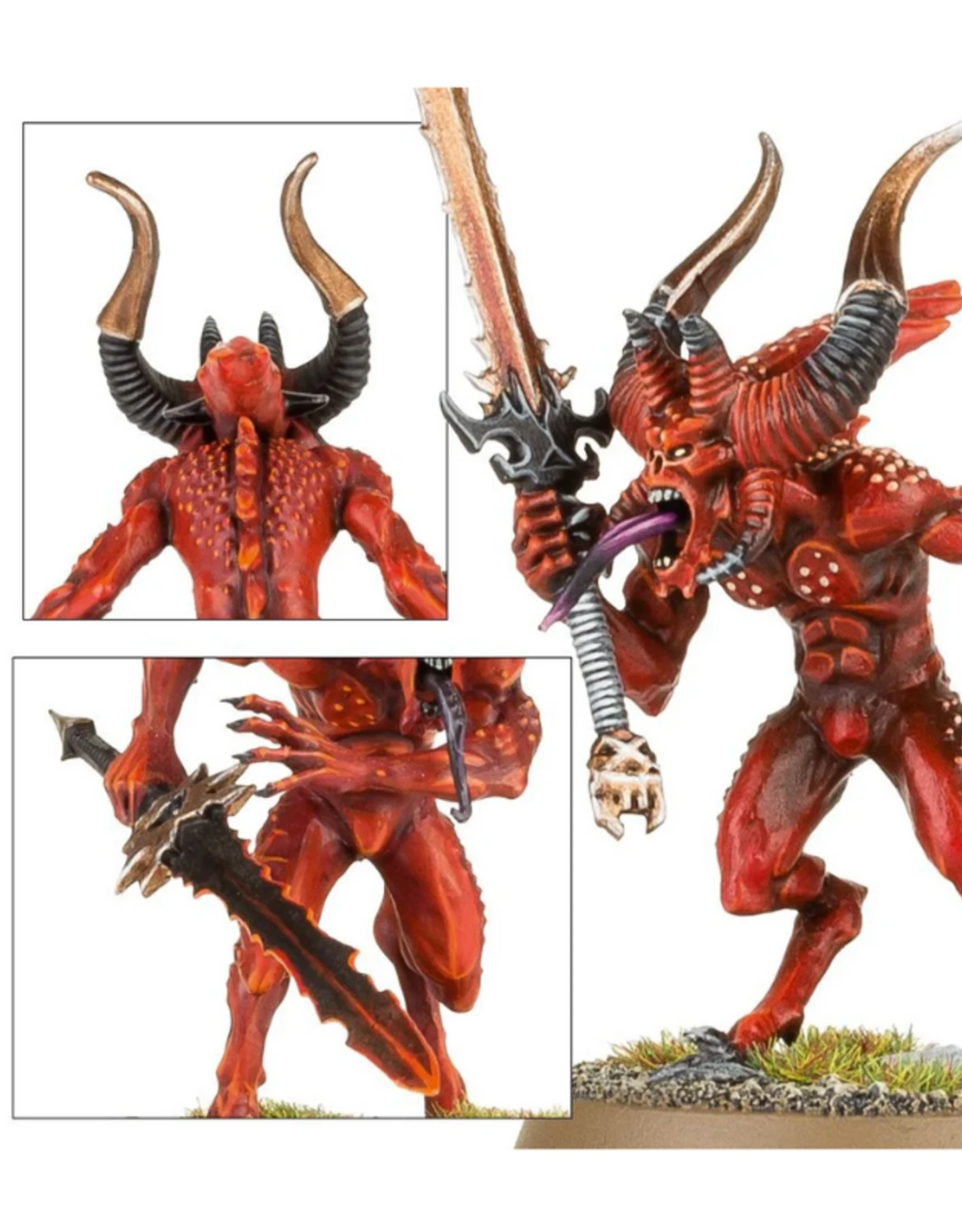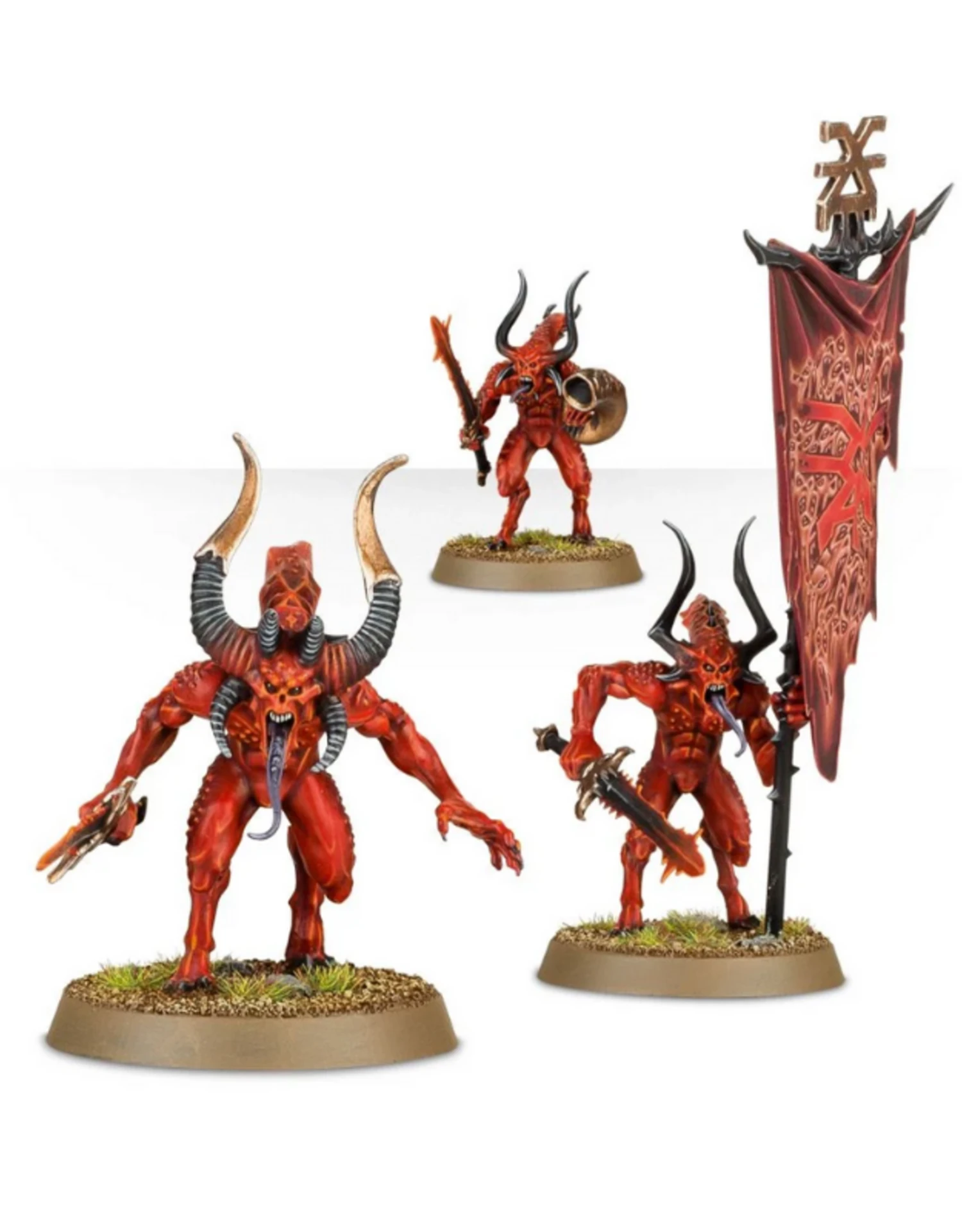 The Bloodletters form the core of the vast legions of the Lord of Battle. Believed to have been foremost amongst the Blood God’s followers in mortal life, their will is as implacable and blood-hungry as Khorne himself. Festooned with rippling muscles, knotted sinews and driven by an unparallel killing instinct, Bloodletters are fearsome opponents.