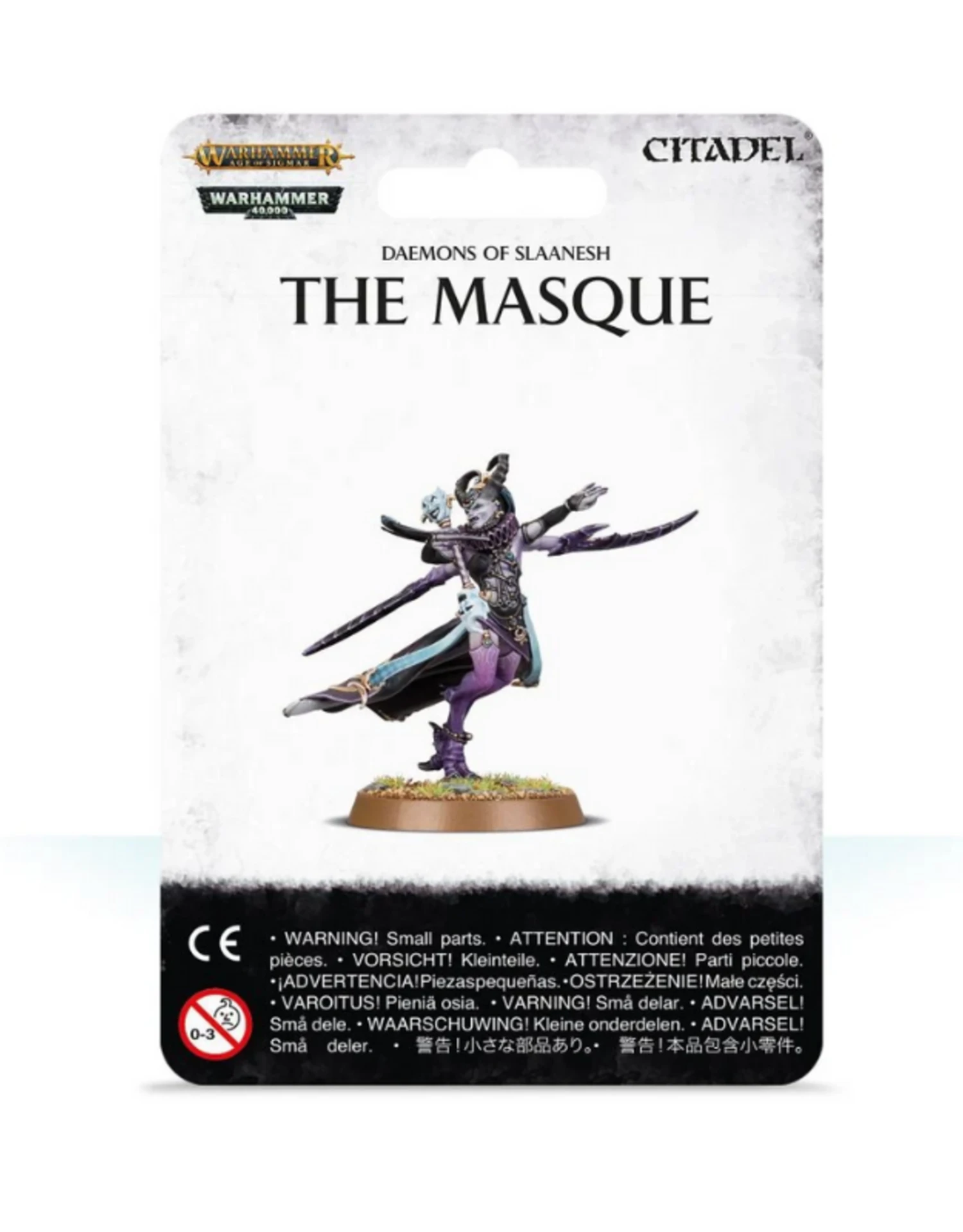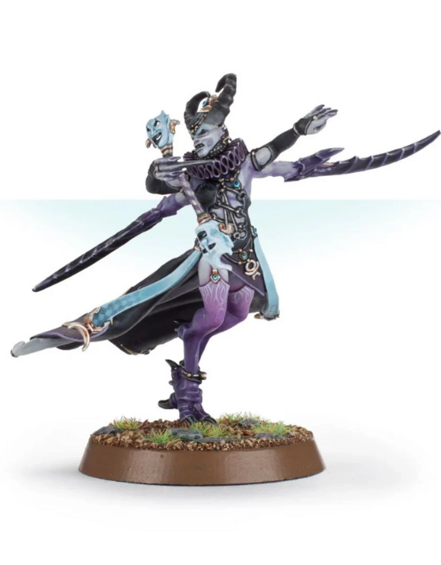 The Masque once entertained Slaanesh, but then displeased him, and was exiled. Since then the Herald has been cursed to dance endlessly. Those drawn into this endless performance are doomed to a swift and spectacular death.