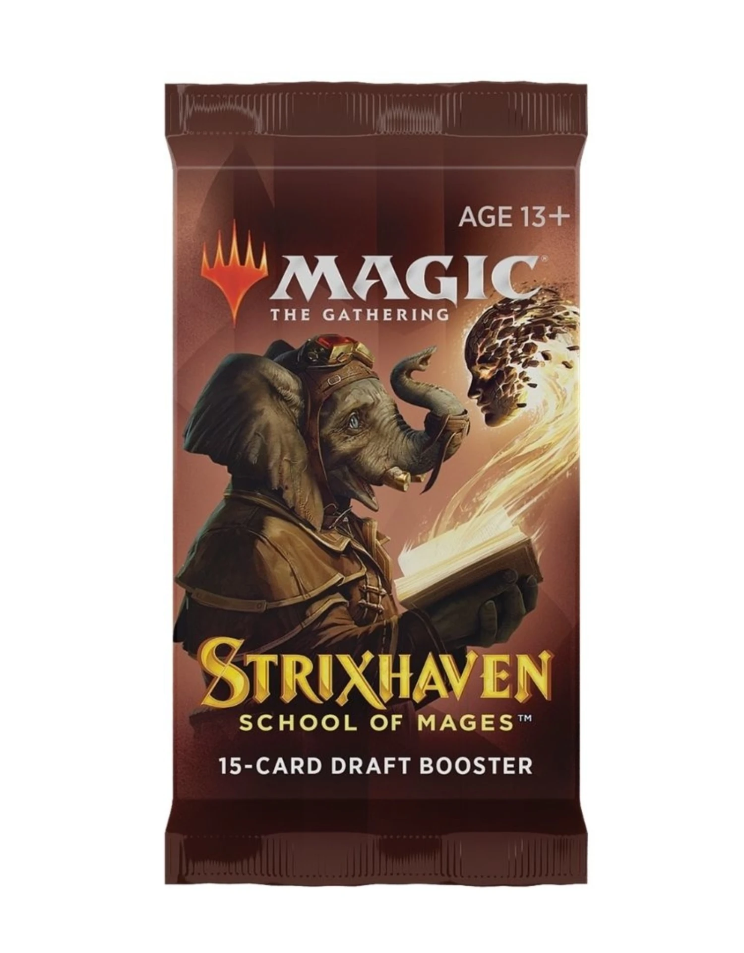 A draft booster from Strixhaven contains 16 Magic: the Gathering cards:
