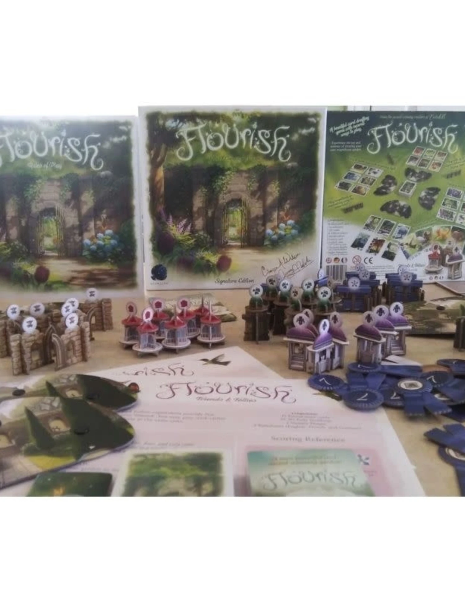 Flourish is a beautiful, card-drafting, garden-building game in which players plan and build the garden of their dreams over the course of the growing season. With delightful imagery, players plan their gardens throughout the game to collect the most points.