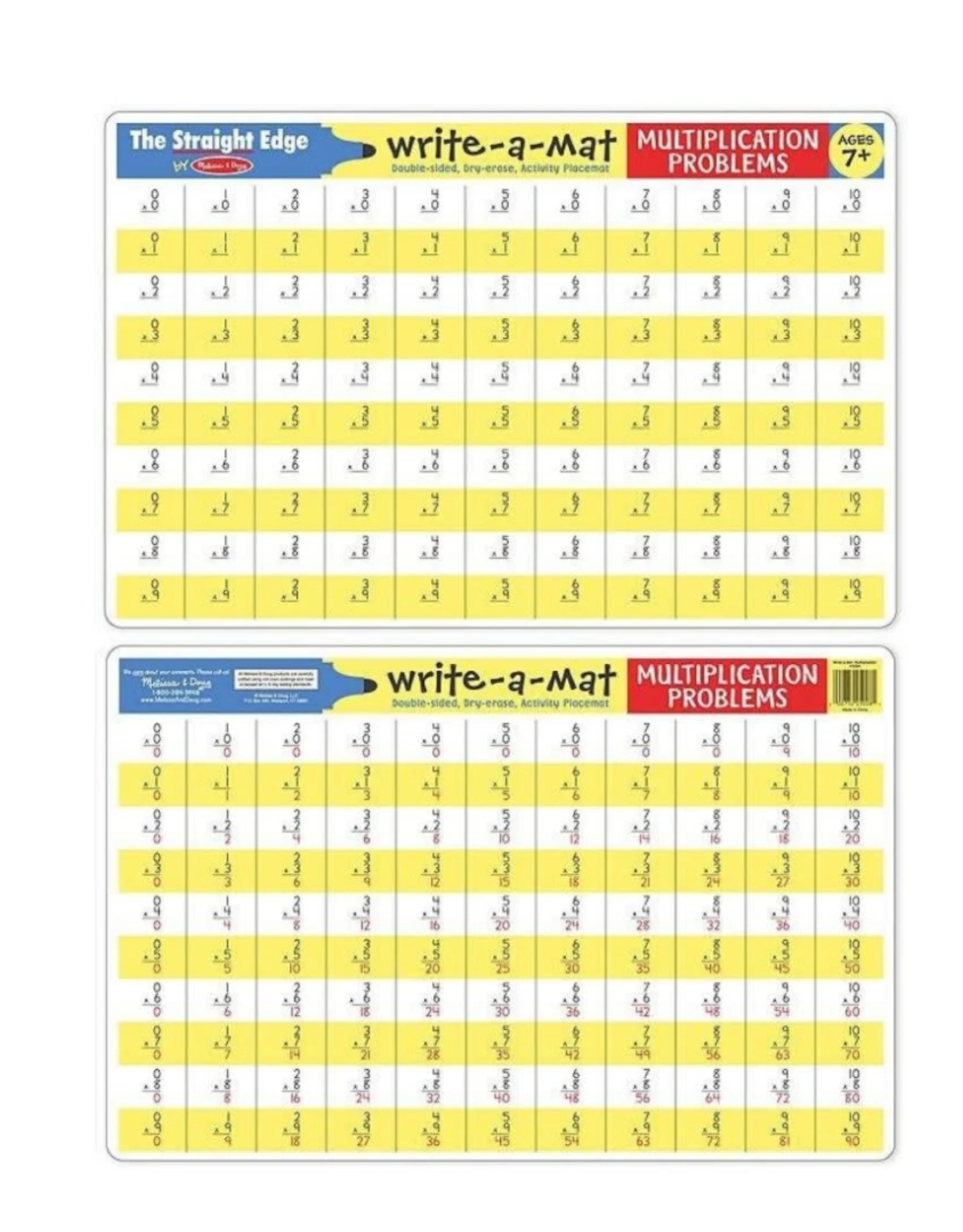 Present your child with this mat that introduces multipication in a fun and engaging way. Use Melissa and Doug wipe-off crayons or a #2 Pencil.