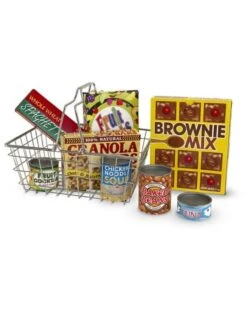 If make-believe fun is on your shopping list, check out this all-in-one kitchen and grocery play set! This realistic wire grocery basket toy is just the right size for pretend play. It comes stocked with play food boxes and play food cans with pop-off lid – in all, eight sturdy, colorfully labeled packages to stock, load and “cook.” The wire basket is carefully designed to be comfortable to carry, easy to store and wonderfully durable. The sturdy handles fold flat for easy folding or stacking, then lift up to carry around the “shop.”