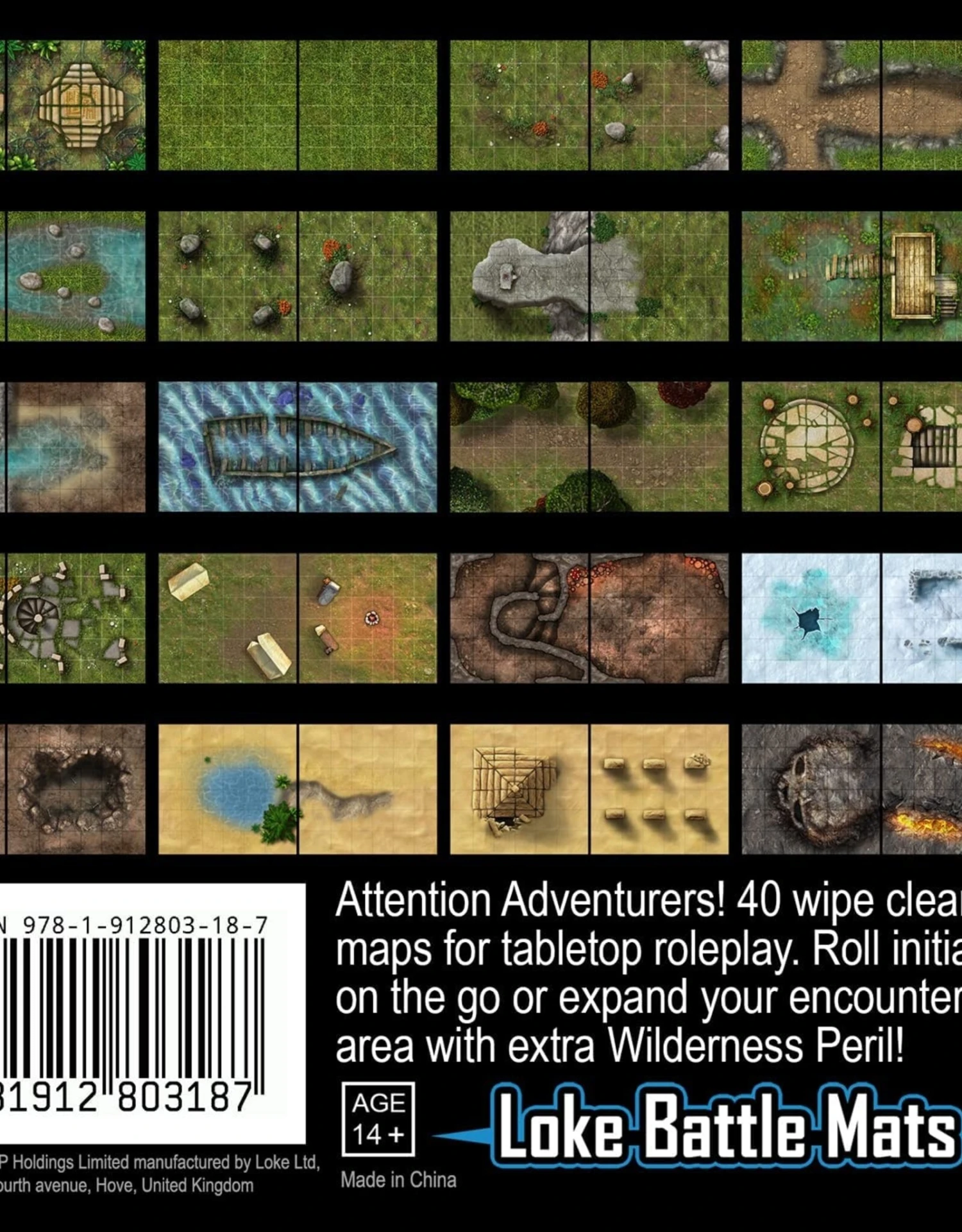 The Little Book of Battle Mats – Wilderness Edition is the book of perilous wilderness maps that can fit in your pocket! This 6×6 book contains 40 lay-flat, wipe-clean maps of wild peril. Perfect to add unexpected encounters to larger maps, or for stand alone random encounters.