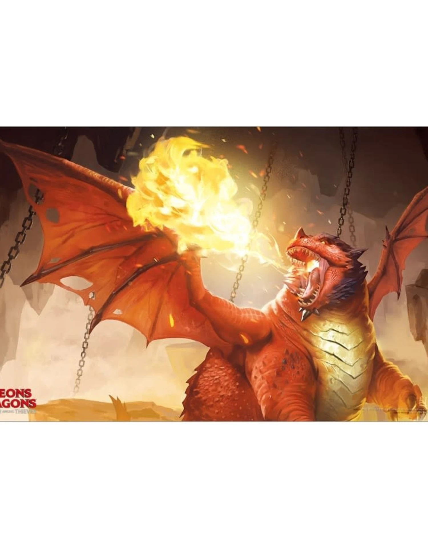 Playmats feature artwork from Dungeons & Dragons: Honor Among Thieves. Made with a soft fabric top to reduce damage to cards during play and a non-slip rubber backing to keep the playmat from shifting during use, playmats enhance the gameplay experience. With dimensions of approximately 24 in. x 13.5 in., a playmat also makes an excellent oversize mousepad for home or office.
