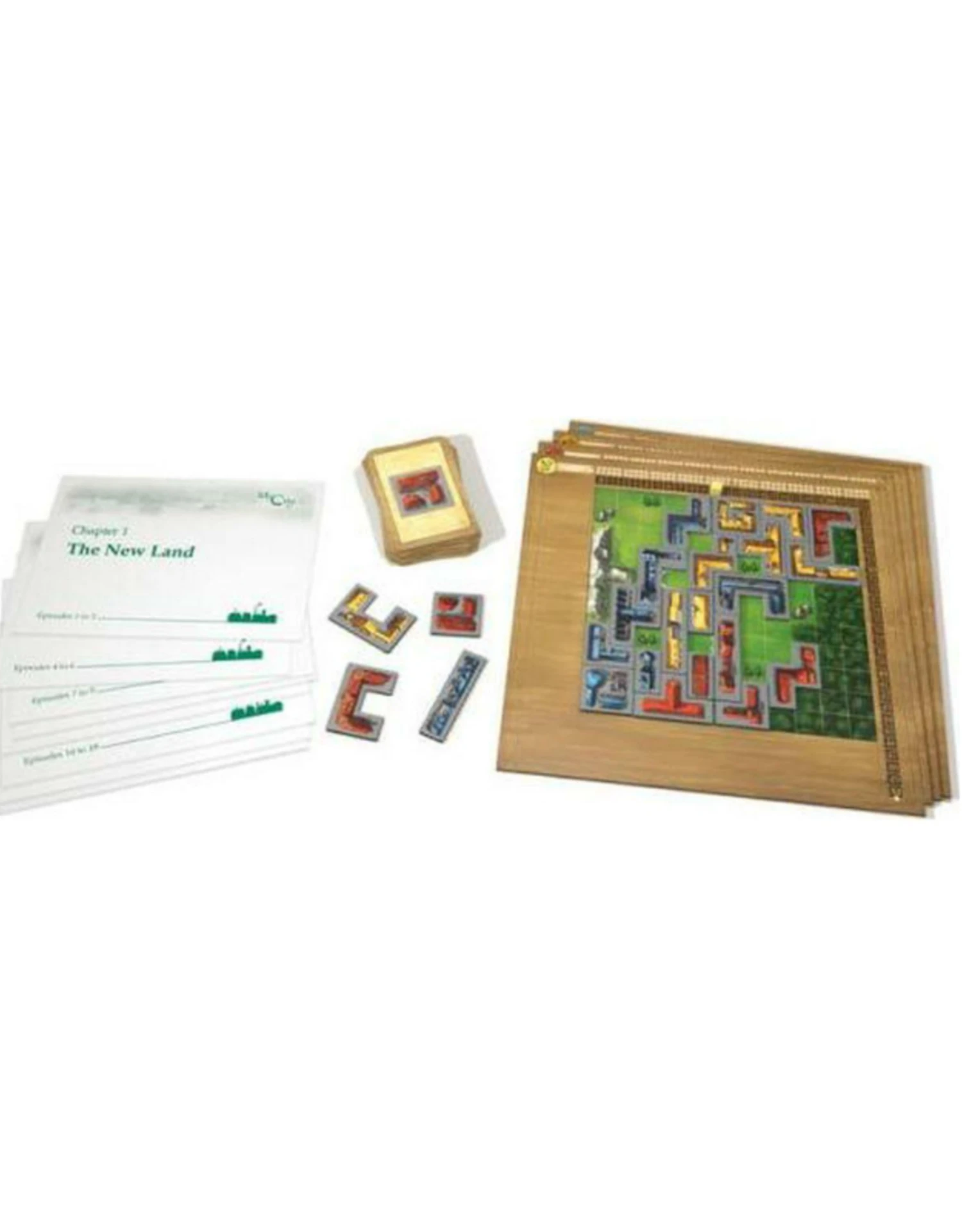 The game consists of 24 episodes, beginning with the development of a city in its early preindustrial stages and progressing through industrialization. During each game, players customize their experience by adding elements to their personal boards and adding cards to the game. Players’ choices and action made during one session of gameplay carry over into the next session, creating a personalized gaming experience.