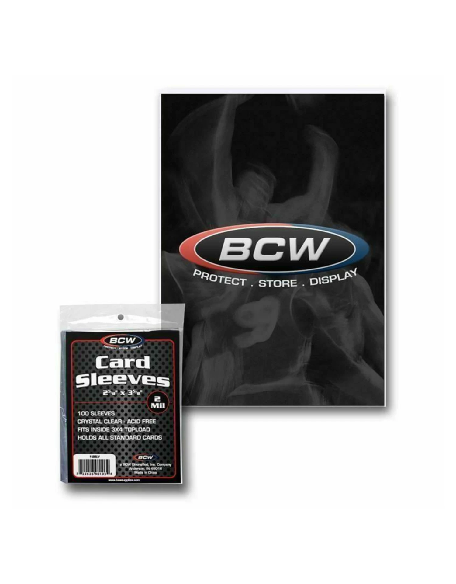 BCW Card Sleeves are an acid free, archival quality product made of crystal clear polypropylene. Use this protective holder to protect, store and display your collectible trading cards like: baseball cards, basketball cards, football cards, hockey cards, Pokemon, Magic The Gathering, and others.