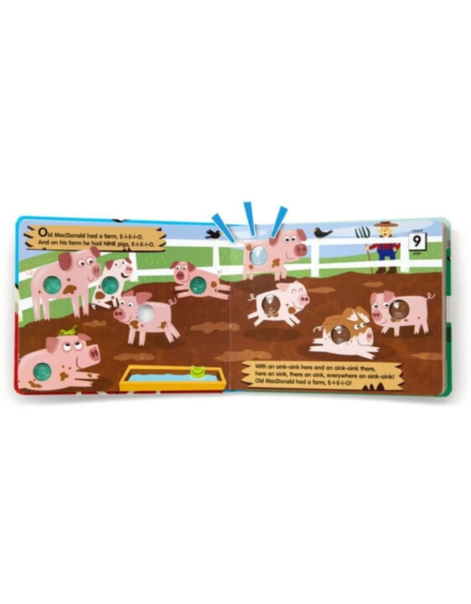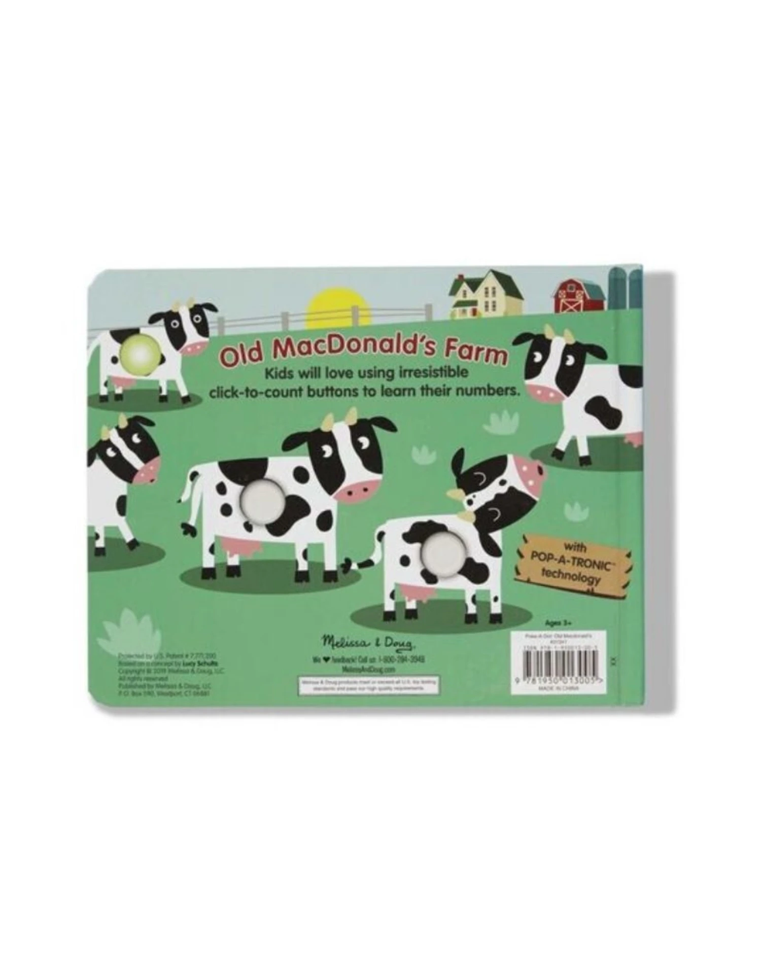 Old MacDonald had a farm, E-I-E-I-POP! Poke the irresistible click-to-count buttons to hear satisfying “clicks” and “pops” as you count all the animals on Old MacDonald’s Farm! This sturdy 20-page interactive board book invites kids to pop along as they sing along to the adorably illustrated story. Poke-a-Dot® books help encourage language development, counting, and fine motor skills. Patented Pop-a-Tronic technology lets kids discover different popping sounds by poking the dots from the front or the back, with pages raised or flat!