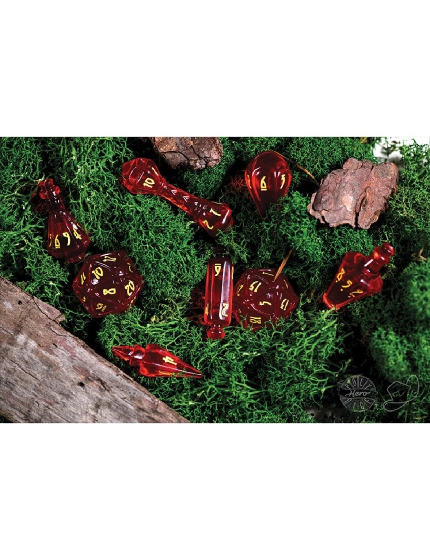 Only the bravest minds ponder the mysteries of the arcane. Cast forth a synthesis of custom dice for your favorite RPGs that will hold a respected place in your collection. Each PolyHero Wizard 8 Dice Set comes with 8 dice: D4 Bolt, D6 Fireball, D8 Scroll, 2 D10 Potions, D12 Wand, and 2 D20 Orbs