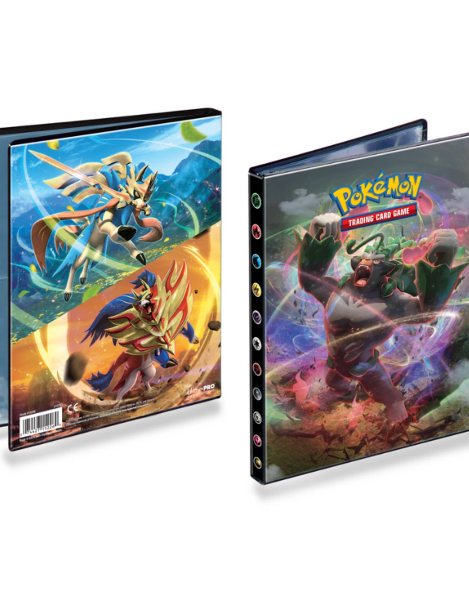 4-pocket portfolio featuring Rillaboom, Zacian, and Zamazenta! Each portfolio holds 40 collectible cards single-loaded or 80 double-loaded cards. Behind the vibrant, full-color cover are 14 high-clarity, archival-safe polypropylene pages.