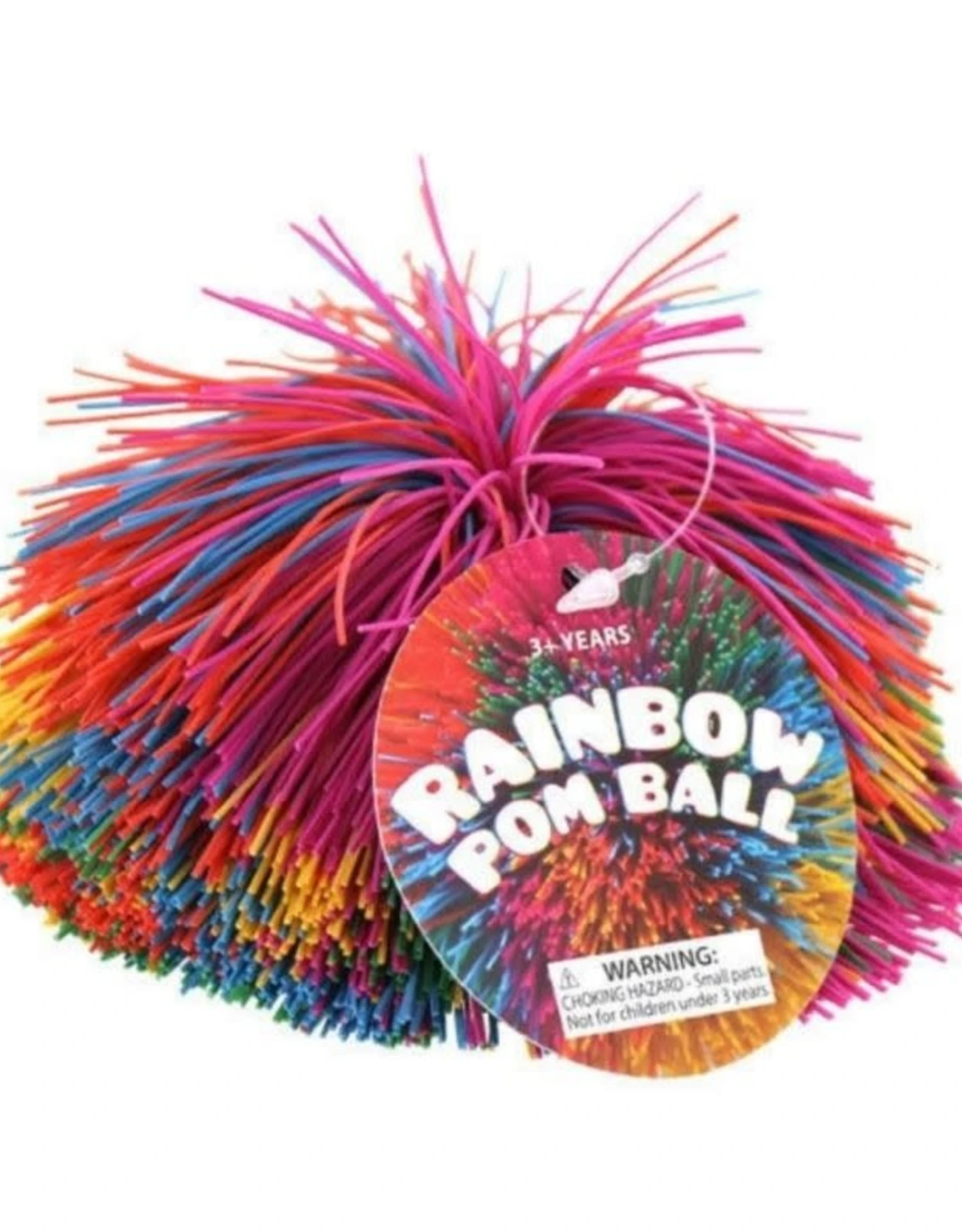 - A fluffy and squishy rainbow pom ball that’s got great bounce