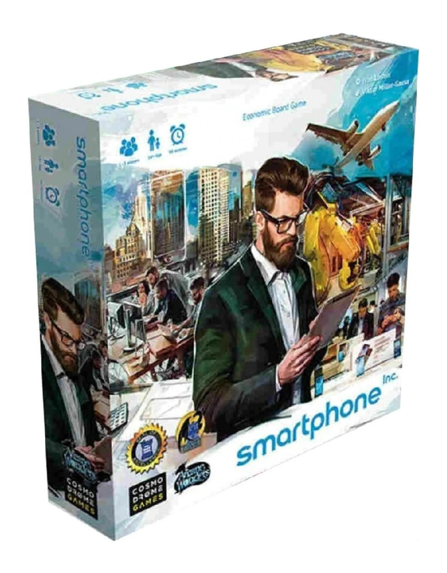 Smartphone Inc. is an economic simulation Eurogame. Over five rounds, players program their decisions about price, production, research, and expansion in order to earn more profits and become the most successful company in the world by earning more money than rivals. The game features a unique mechanism of planning, which combines patching mechanisms with bidding and action selection. Each of the rounds consists of eight simple phases: planning, pricing, production, development, research, expansion, selling, and profits.